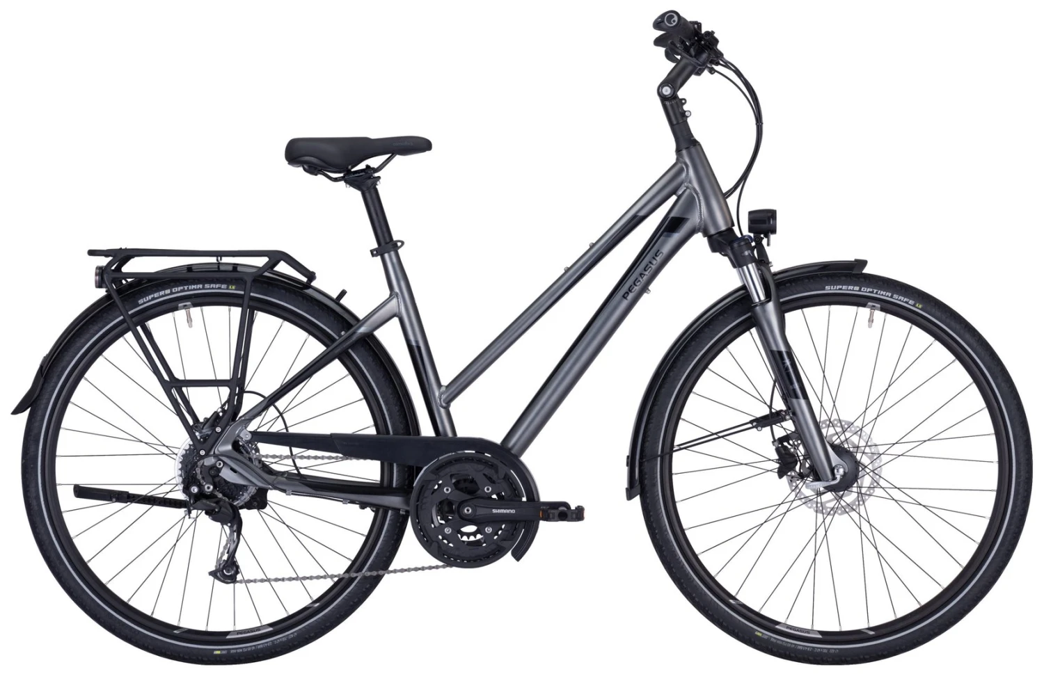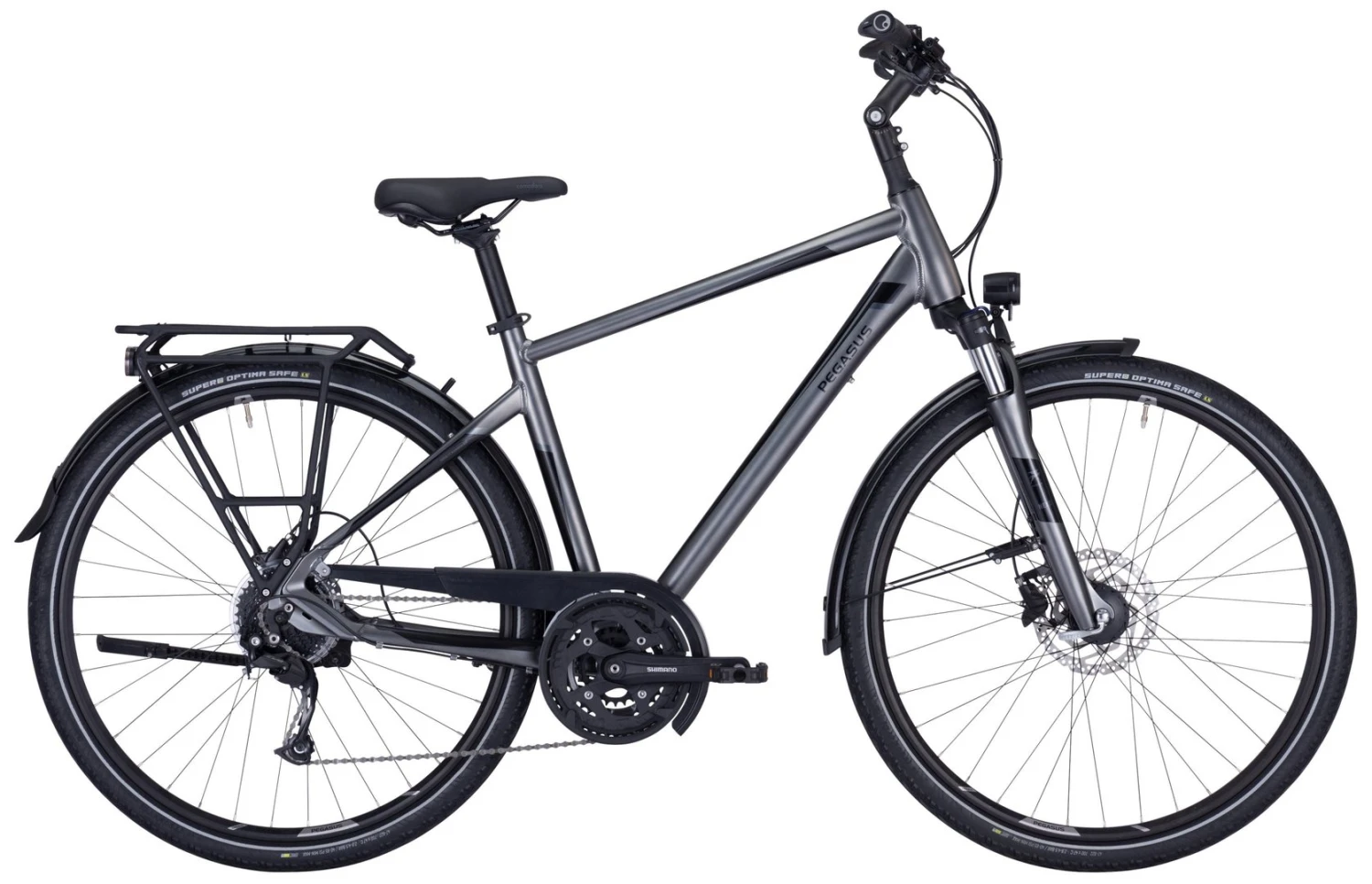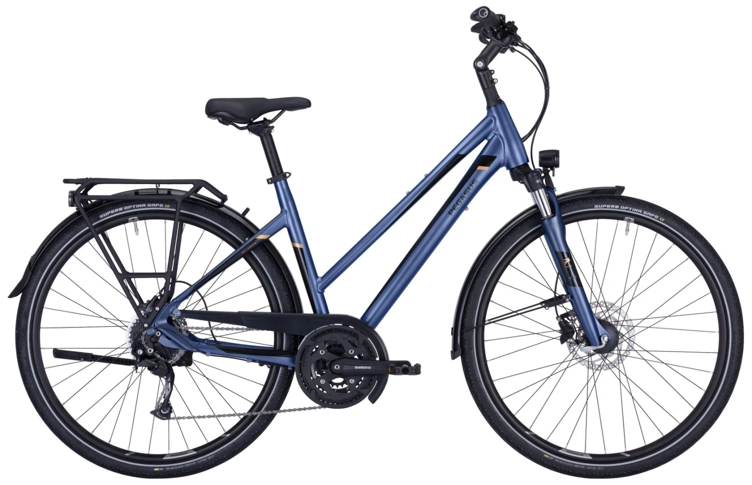 Mit dem Premio SL Disc sind Fahrerinnen und Fahrer für sportliche Touren und schnelle Pendelstrecken im Alltag optimal gerüstet. Die SHIMANO Alivio 27-Gang-Schaltung bietet dafür eine besonders große Bandbreite, so dass auch anspruchsvolle Strecken sicher gemeistert werden können. Hydraulische SHIMANO-Scheibenbremsen sorgen dabei für genau dosierbare Bremskraft und bestmögliche Sicherheit bei jeder Witterung. Pannengeschützte SUPERO Optima Safe Reifen und der Extra-Komfort der gefederten Sattelstütze mit dem besonders bequemen Comodoro-Sattel runden die hochwertige Ausstattung ab.